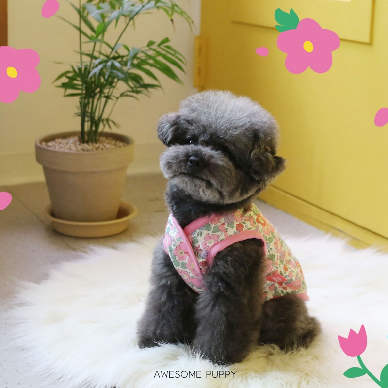 어썸퍼피 플로럴퀼팅베스트(핑크)_커플룩