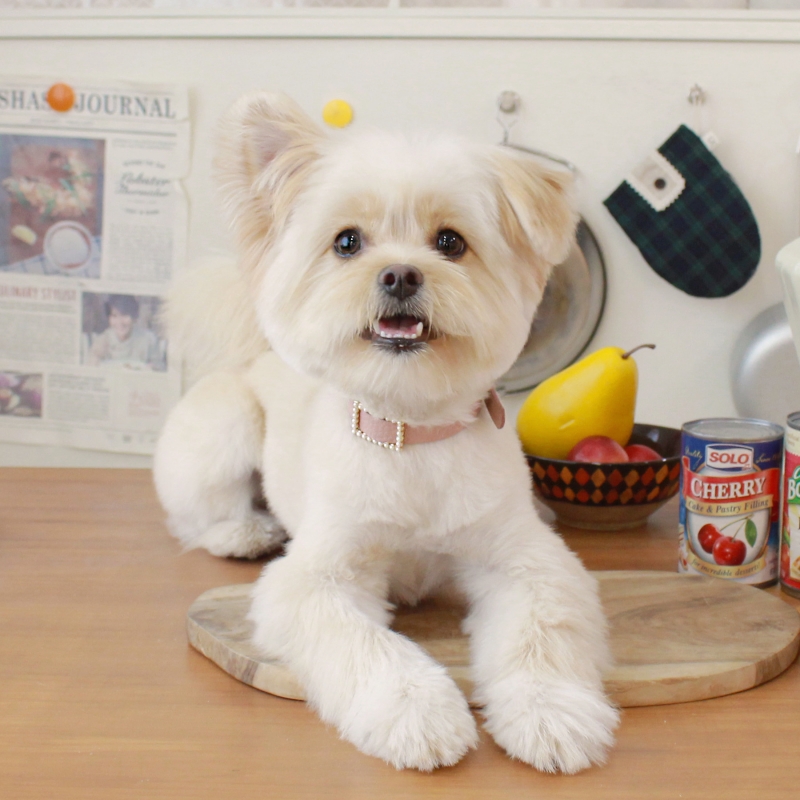메종드미우 스퀘어 진주 목줄 로즈 핑크