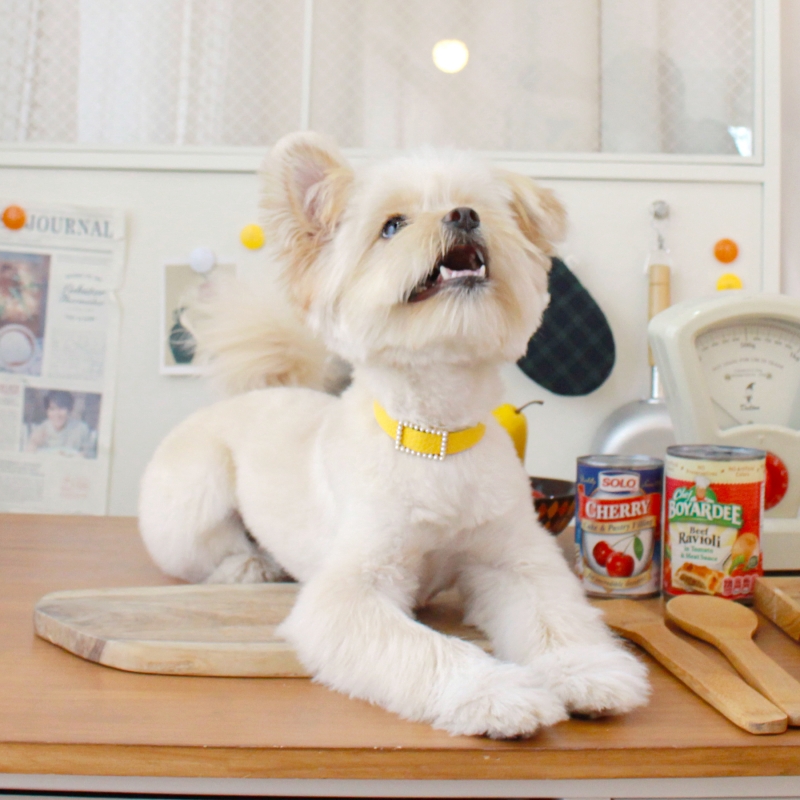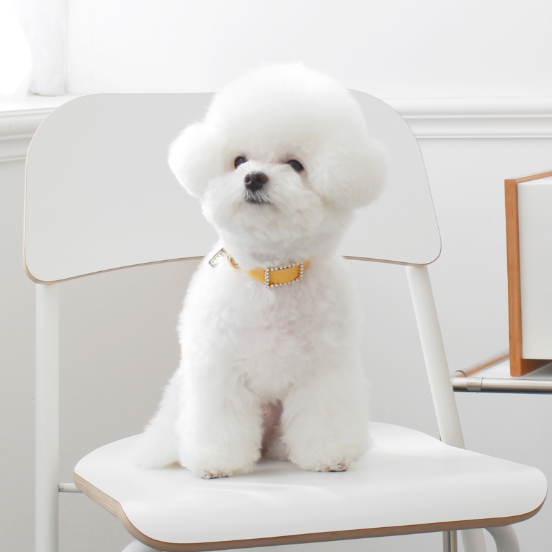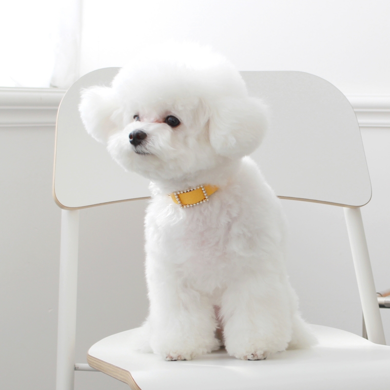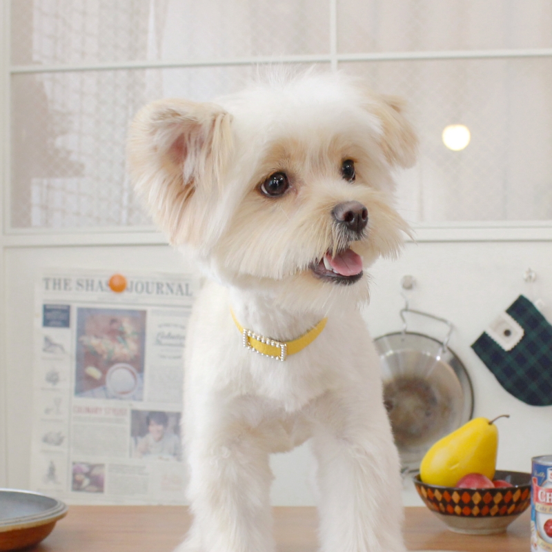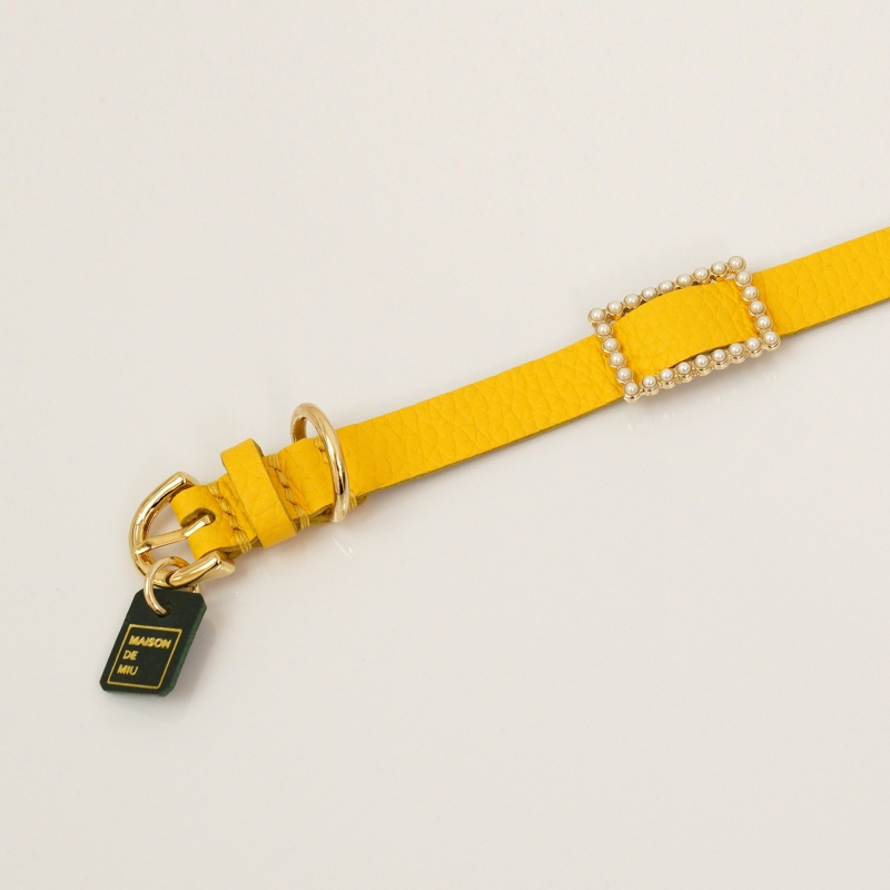 메종드미우 스퀘어 진주 목줄 옐로우