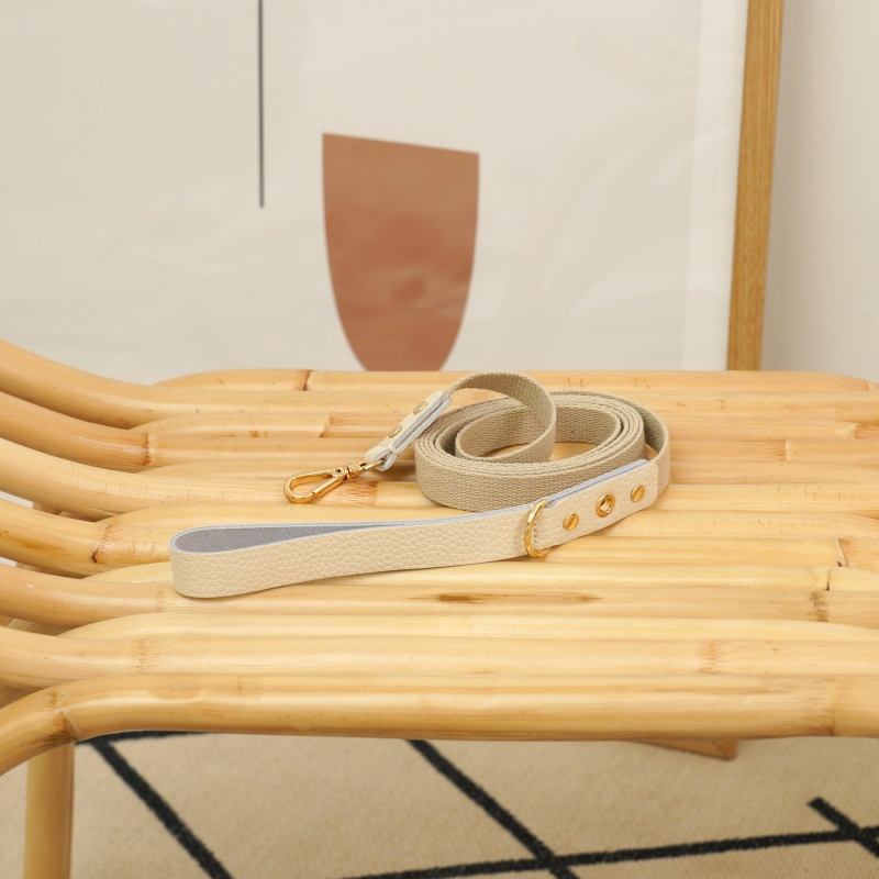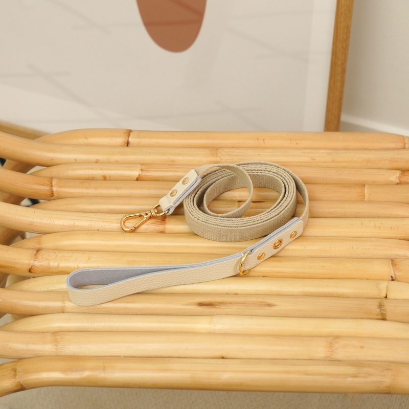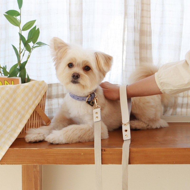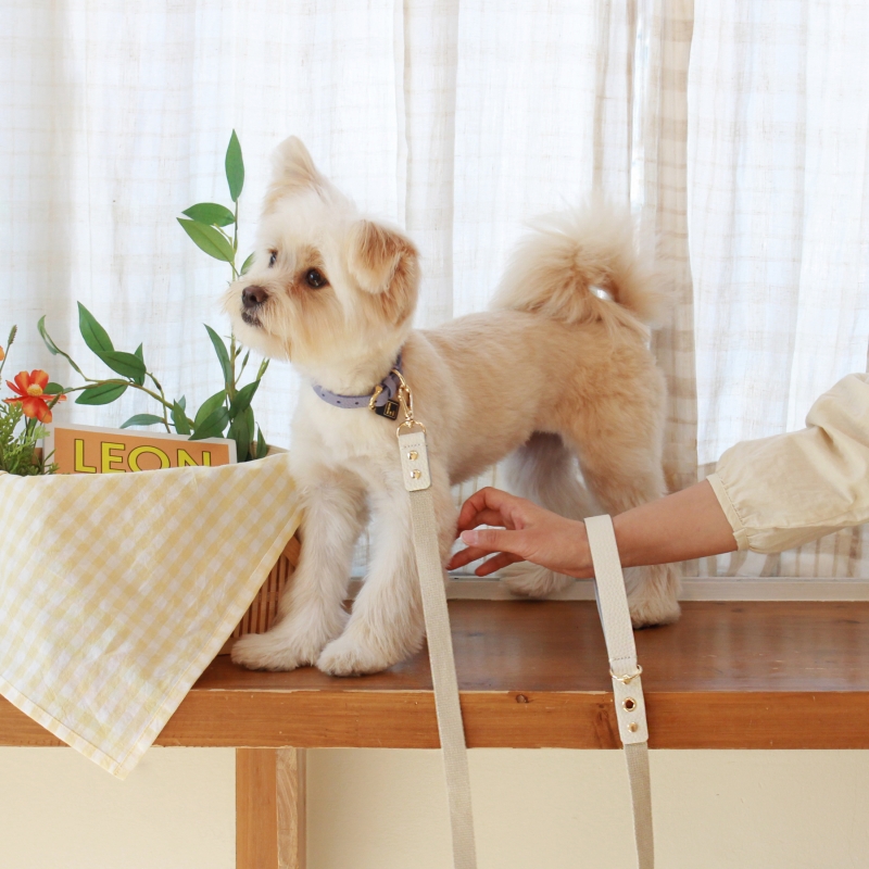• 메종드미우 러닝메이트 레더&웨빙 리드줄 화이트/아이보리