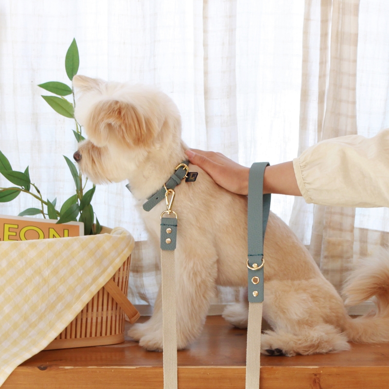 • 메종드미우 러닝메이트 레더&웨빙 리드줄 인디안 블루/아이보리