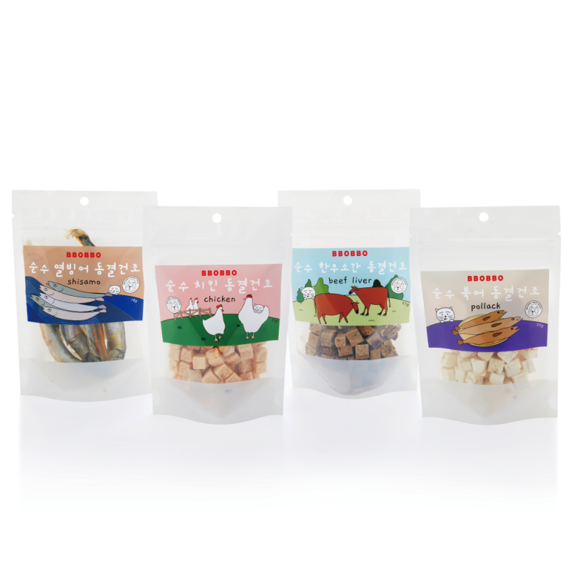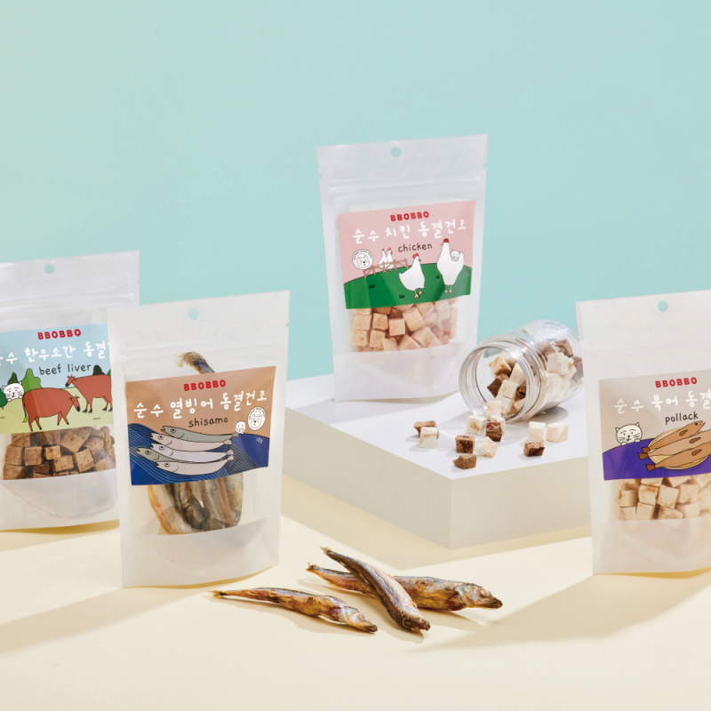 [눈썹스티커 증정] 뽀뽀제과 동결건조 고기 4종 (북어, 소간, 열빙어, 치킨)