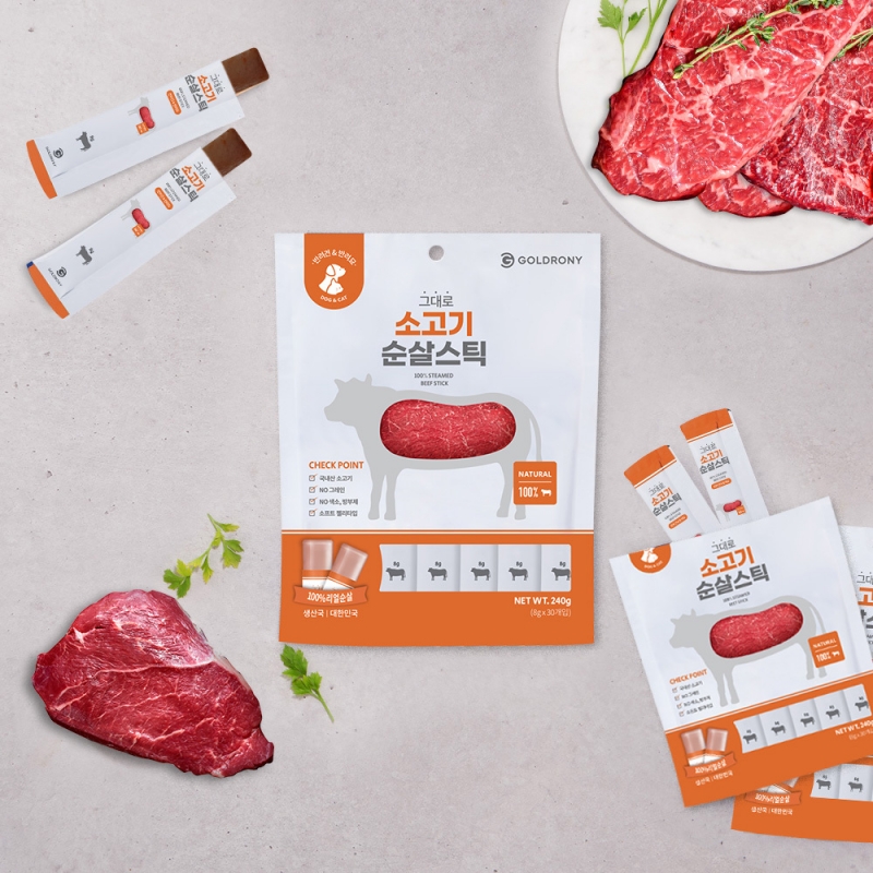 [바잇미블프][순살스틱 2p증정]골드로니 그대로 순살스틱 소고기 30입개_강아지고양이 츄르
