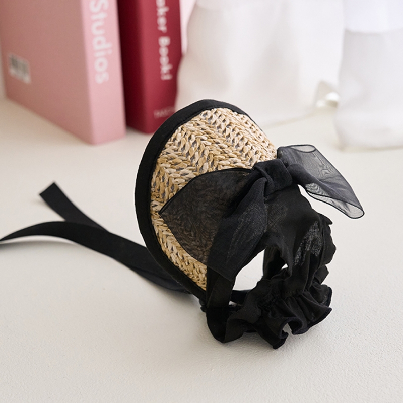 블랙 리본 왕골 썬캡