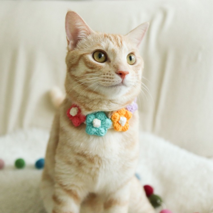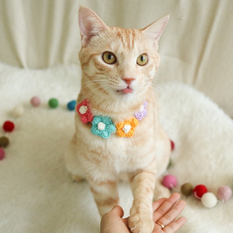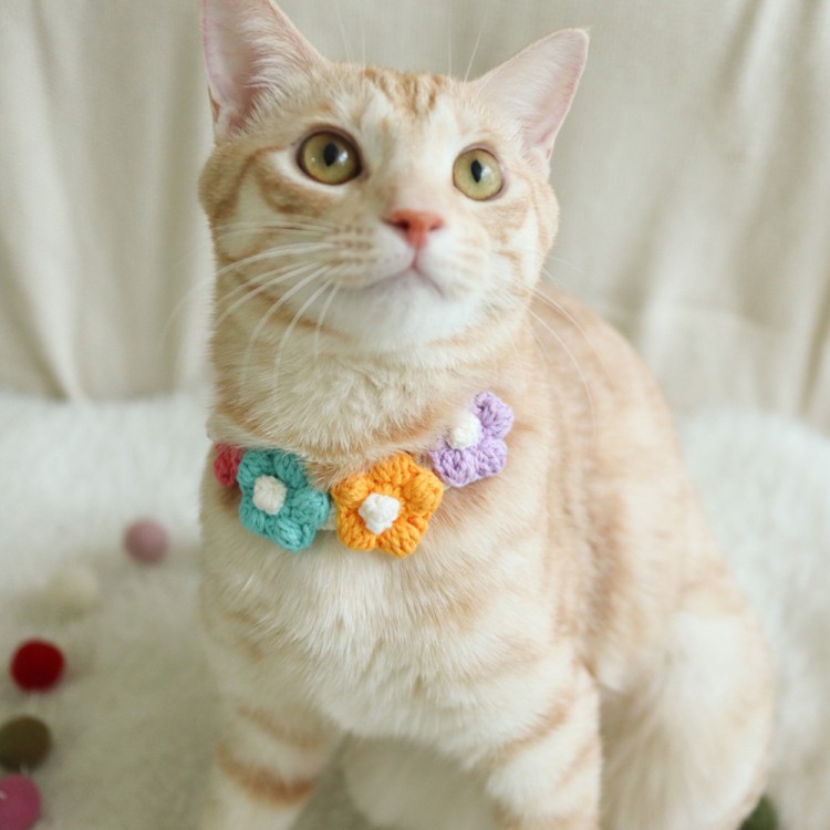 개달당 꽃송이 뜨개 초커 고양이목걸이 강아지꽃목걸이