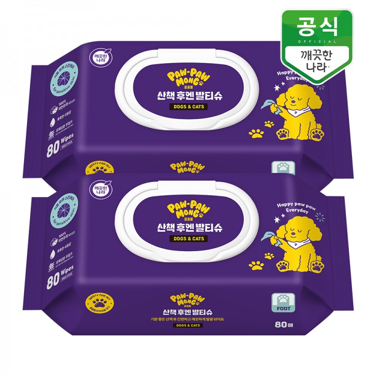 깨끗한나라 포포몽 강아지 산책 발티슈 80매 x 2팩