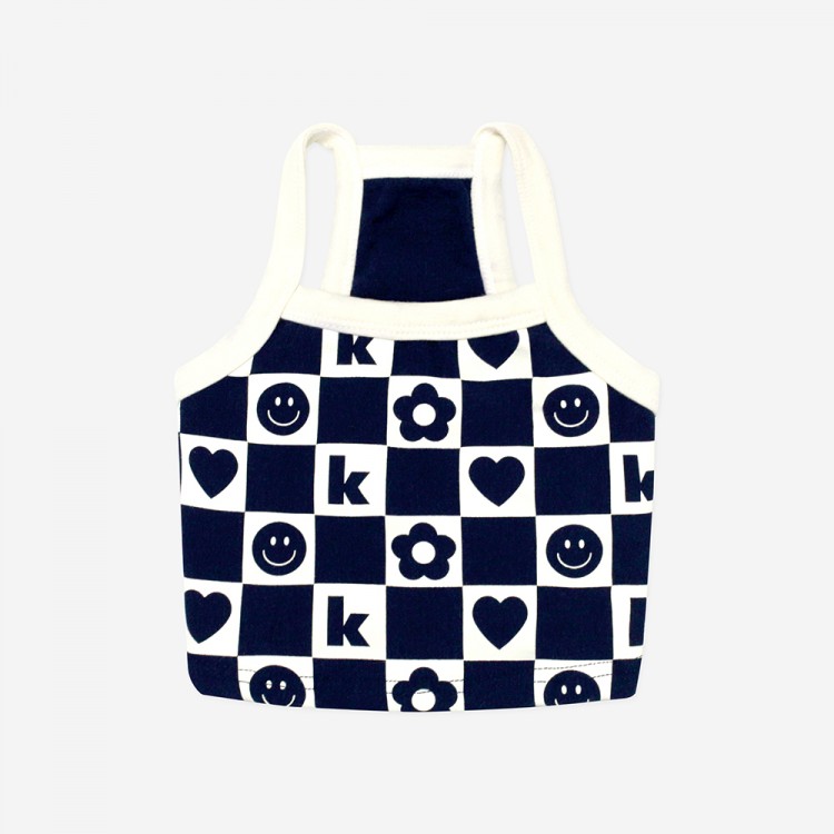 키니키니 스마일 체크 크롭탑 - 네이비