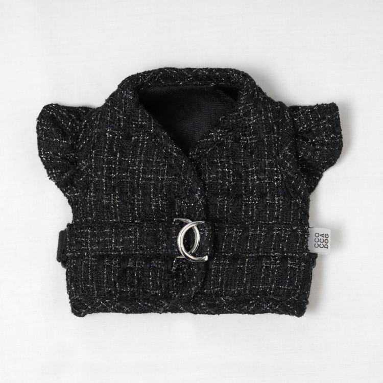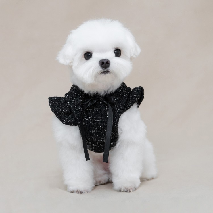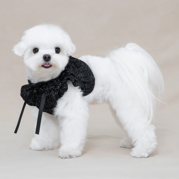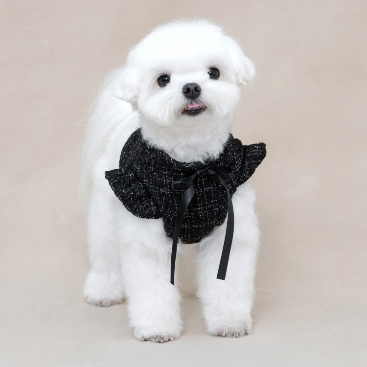 • 꼬까독 루렉스 트위드 프릴 강아지 하네스 옷 - 블랙