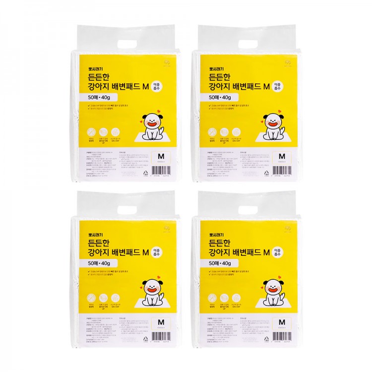 (4개세트) 뽀시래기 든든한 강아지 배변패드 M 이중흡수 50매