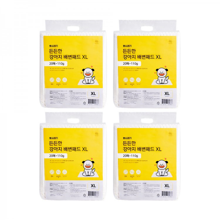 (4개세트) 뽀시래기 든든한 강아지 배변패드 XL 20매