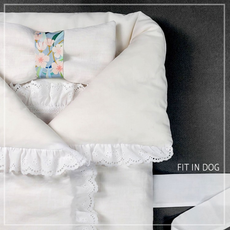 100% 최고급 목화솜을 넣어 포근한 천사수의보. 리본모양의 베게에 두른 꽃벨트는 아이에게 주는 가족의 소중한 선물을 의미합니다.