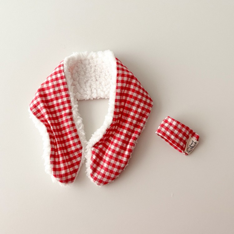 • 개달당 메리 레드체크 양털 강아지 고양이 털목도리 2size