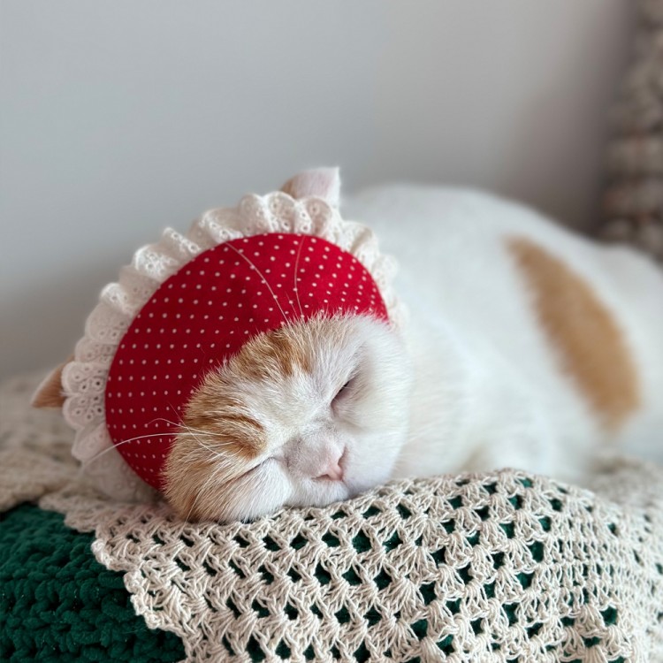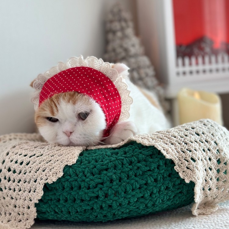 개달당 레드도트 냥카프 고무줄 강아지 고양이 스카프