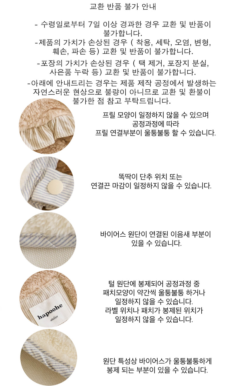 핸드메이드 제품으로 크기나 박음질이 일정하지 않을수 있으며 이에관한 교환및 반품은 불가합니다.