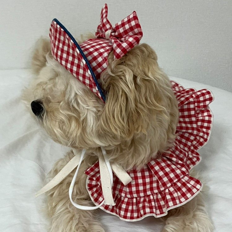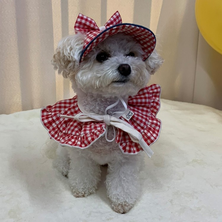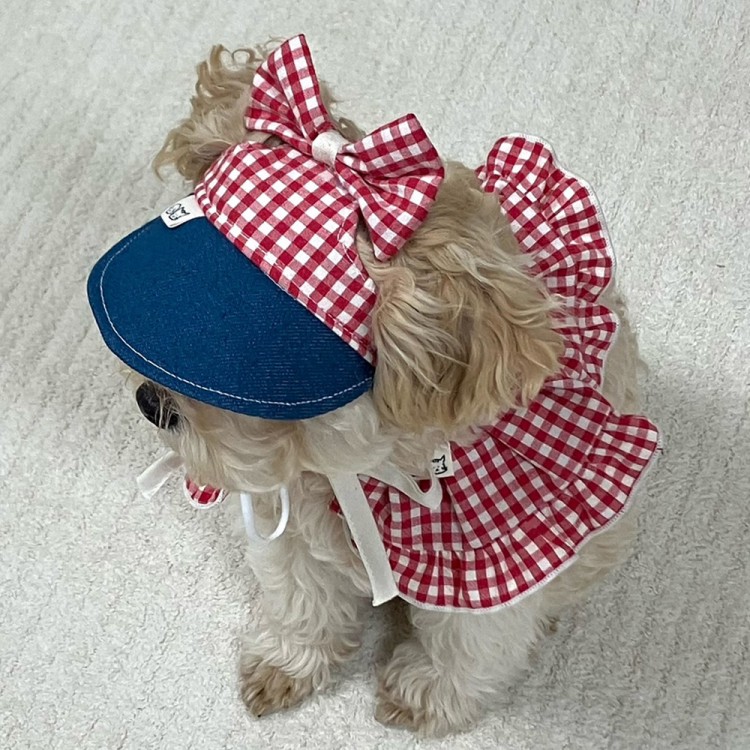 • 개달당 복고 체크 리본 강아지 고양이 선캡 모자 3colors