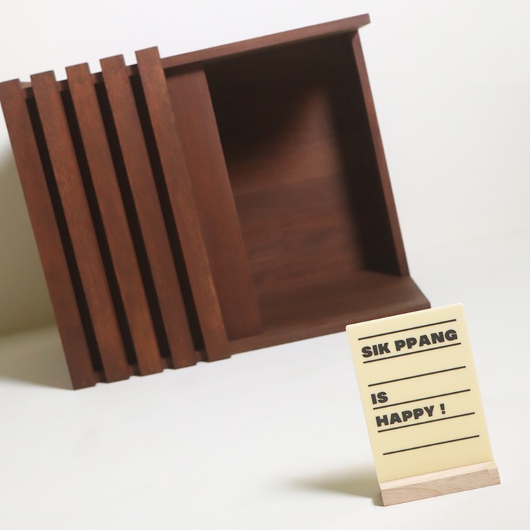 반려동물 공간 및 하우스에 이름을 새겨주기 위한 입간판 스타일 거치대입니다. 강아지 및 고양이의 이름이 없는 하우스를 사용하고 계시는 분들이 많습니다. 이름을 새겨주고 싶지만, 멀쩡한 하우스를 바꾸기도 힘들거구요. 이런 간단한 간판 하나로 기존의 하우스가 더욱 돋보이게 만들어보는건 어떨까요? 여러 마리의 반려동물과 함께 한다면 더욱 공간 구분을 위한 감성적인 소품이 되어 줄거에요.