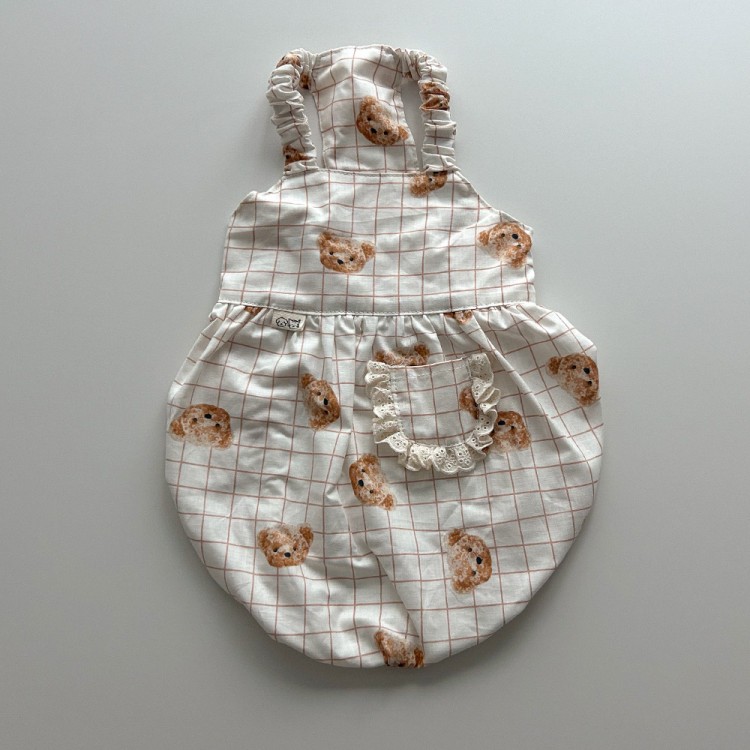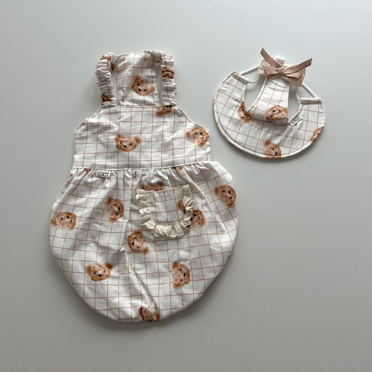 • 개달당 곰돌이체크 호박 나시 벌룬 원피스 썬햇 모자 2종 SET