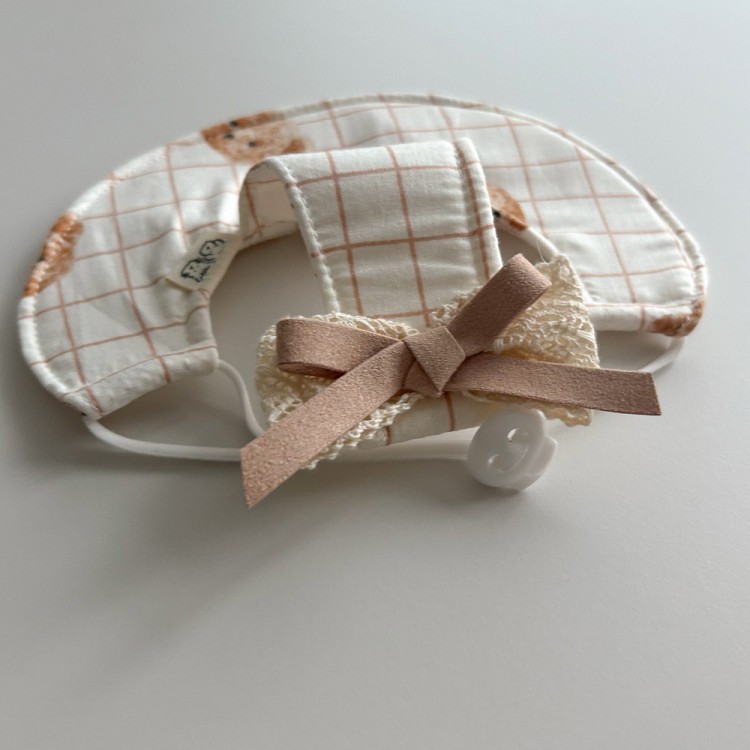 개달당 곰돌이체크 호박 나시 벌룬 원피스 썬햇 모자 2종 SET