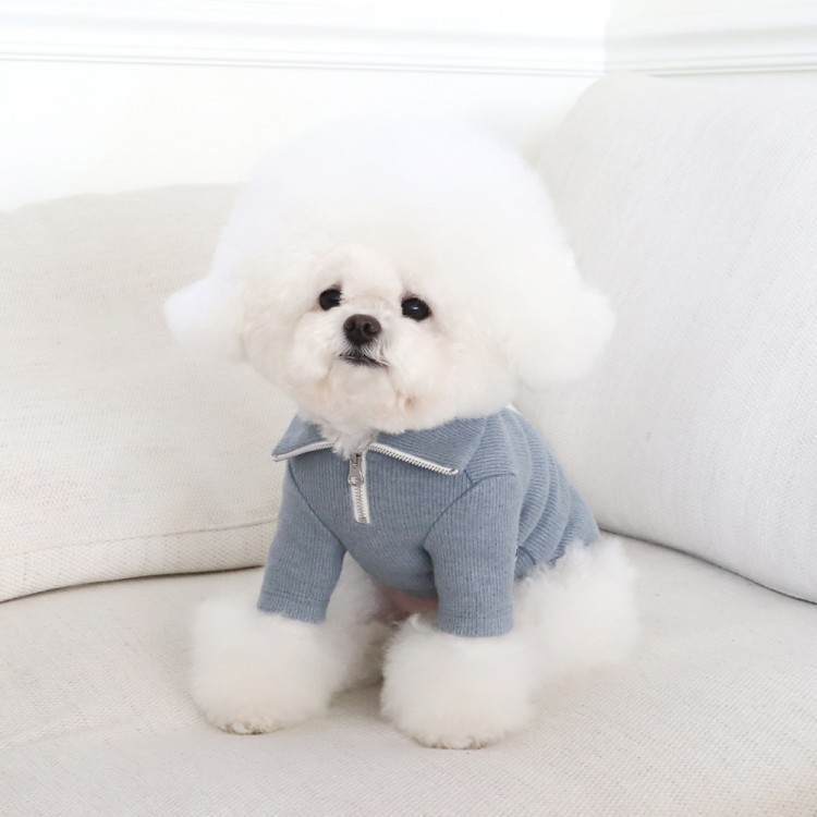 쉬오트 크림블 로고 니트 하프집업 (파우더블루)