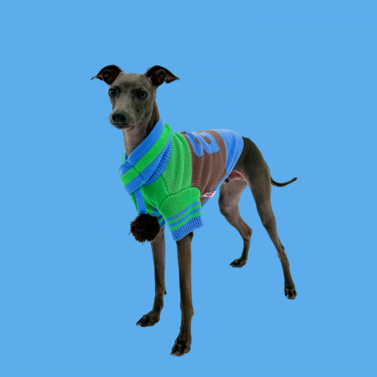 투프 스트라이프 폼폼 스카프 BLU