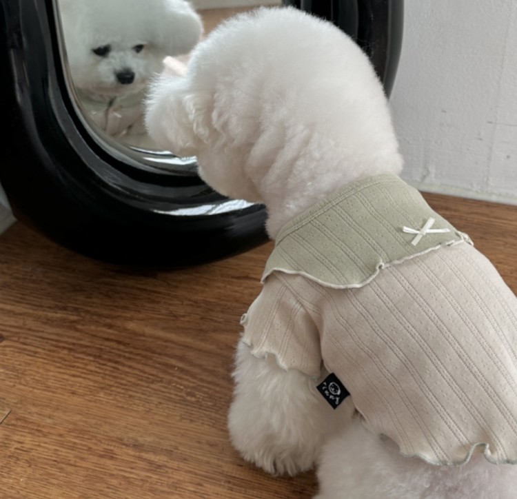 모델 : 2KG 가슴둘레 28cm 목둘레 18cm 등 24cm (등이 긴 체형으로 S사이즈 착용)