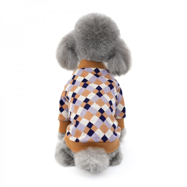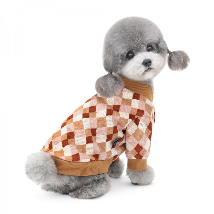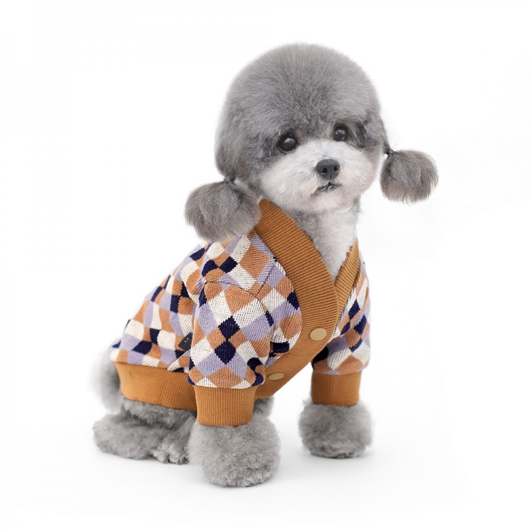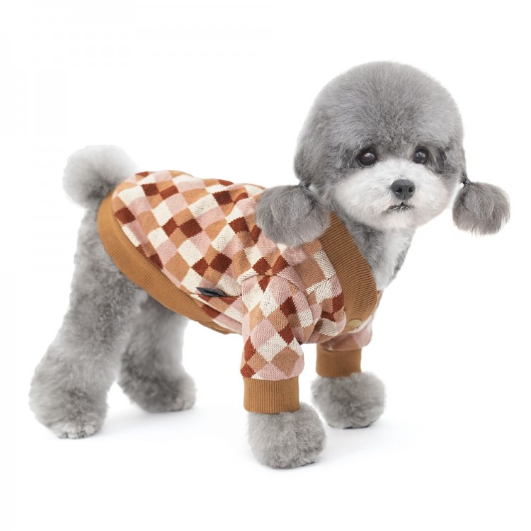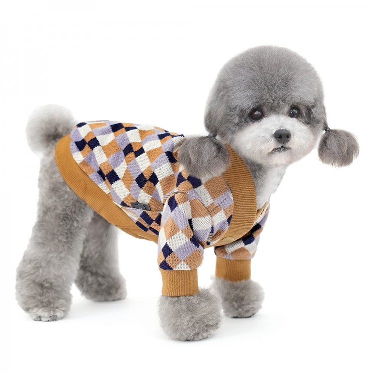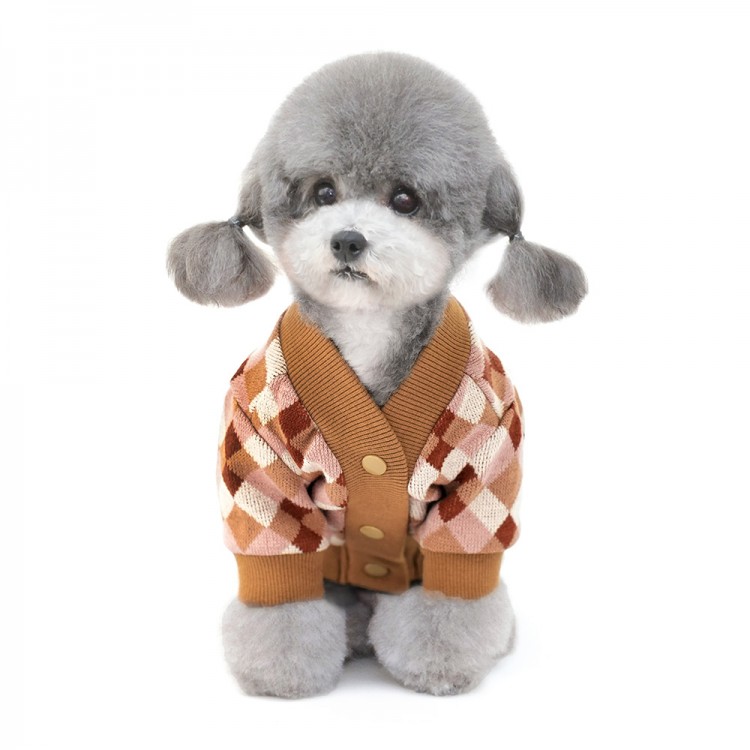 준성펫 아가일 체크 니트 가디건 (핑크/퍼플)