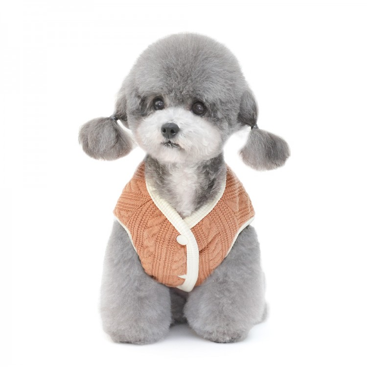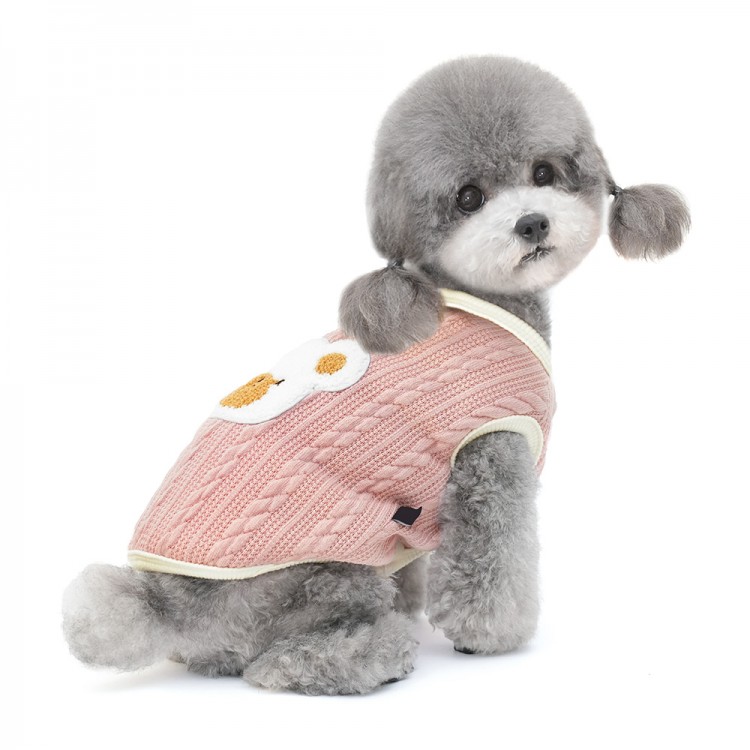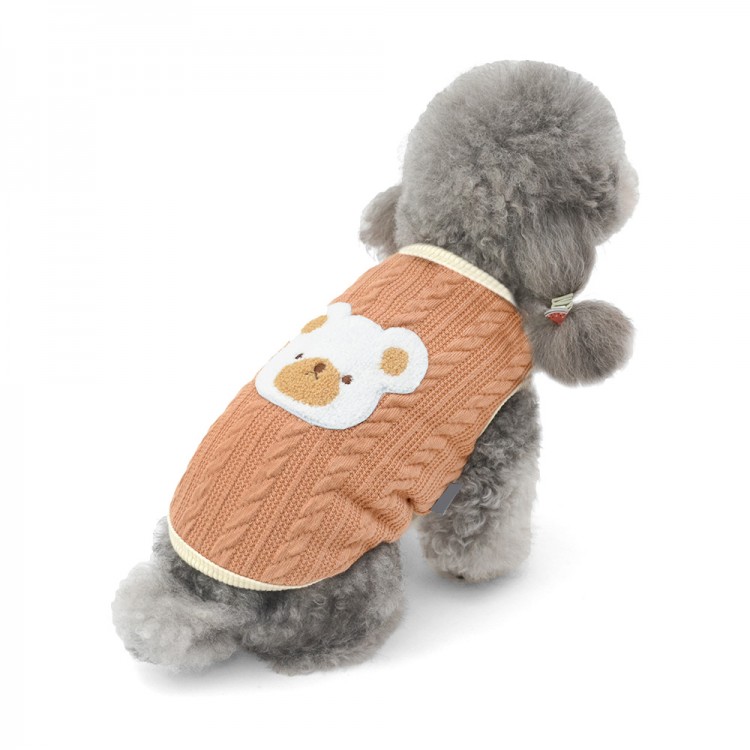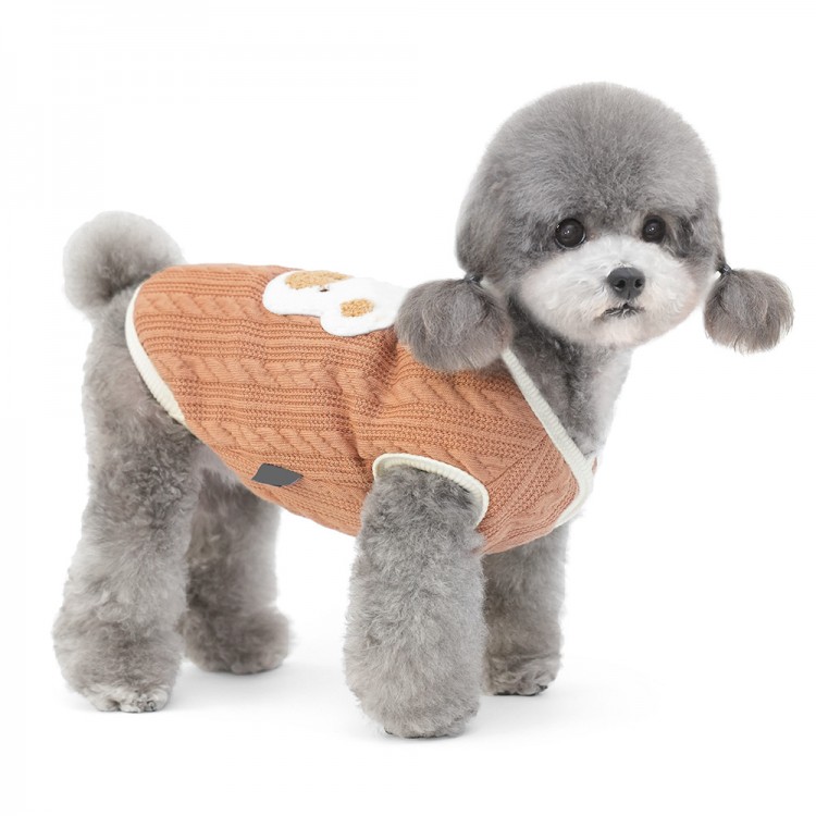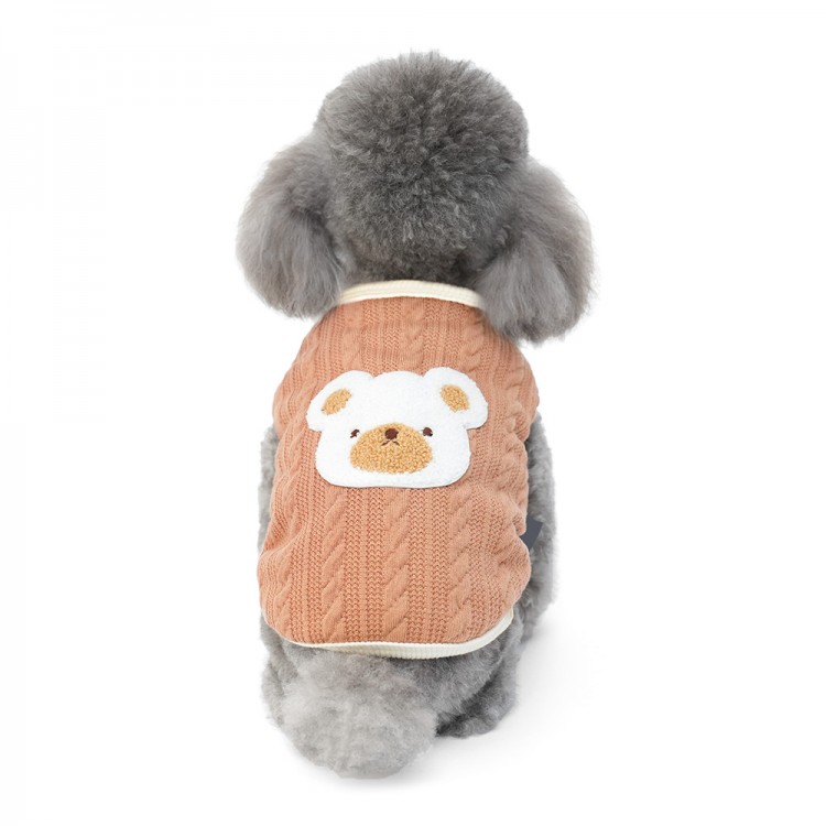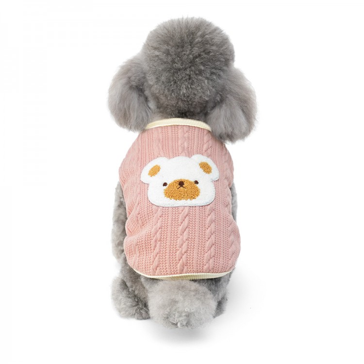 준성펫 곰돌이 꽈베기 니트 조끼 (핑크/브라운)
