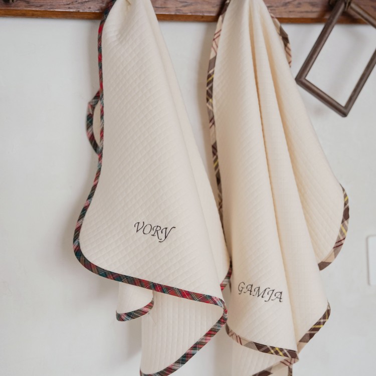 오우스튜디오 (Collaboration Product) Organic Quilted Blanket with Check (이름 자수 포함) : Teddy Check