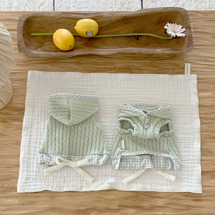 • 니어바이어스 케이블 니트 크롭 탑 (세이지 그린)