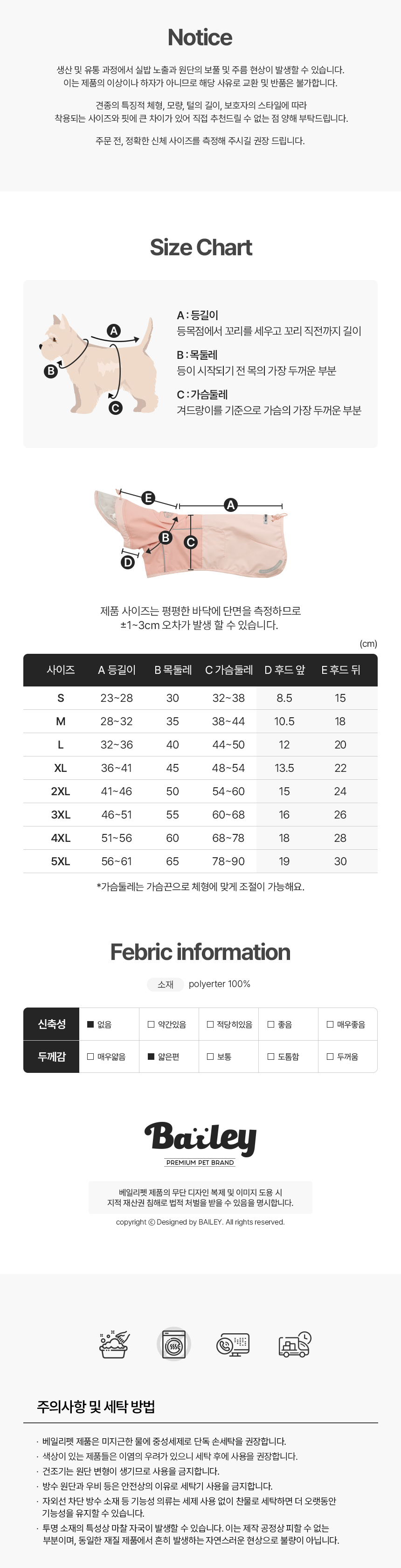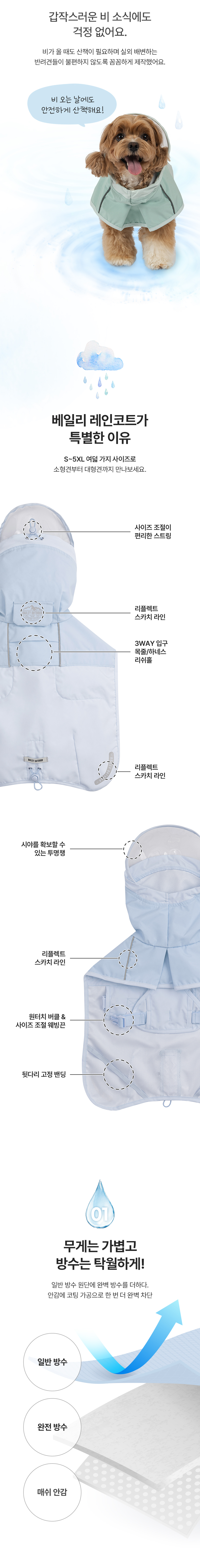• 베일리펫 중형견 대형견 우비 비옷 아웃도어 레인코트 스카이 (3XL-5XL)