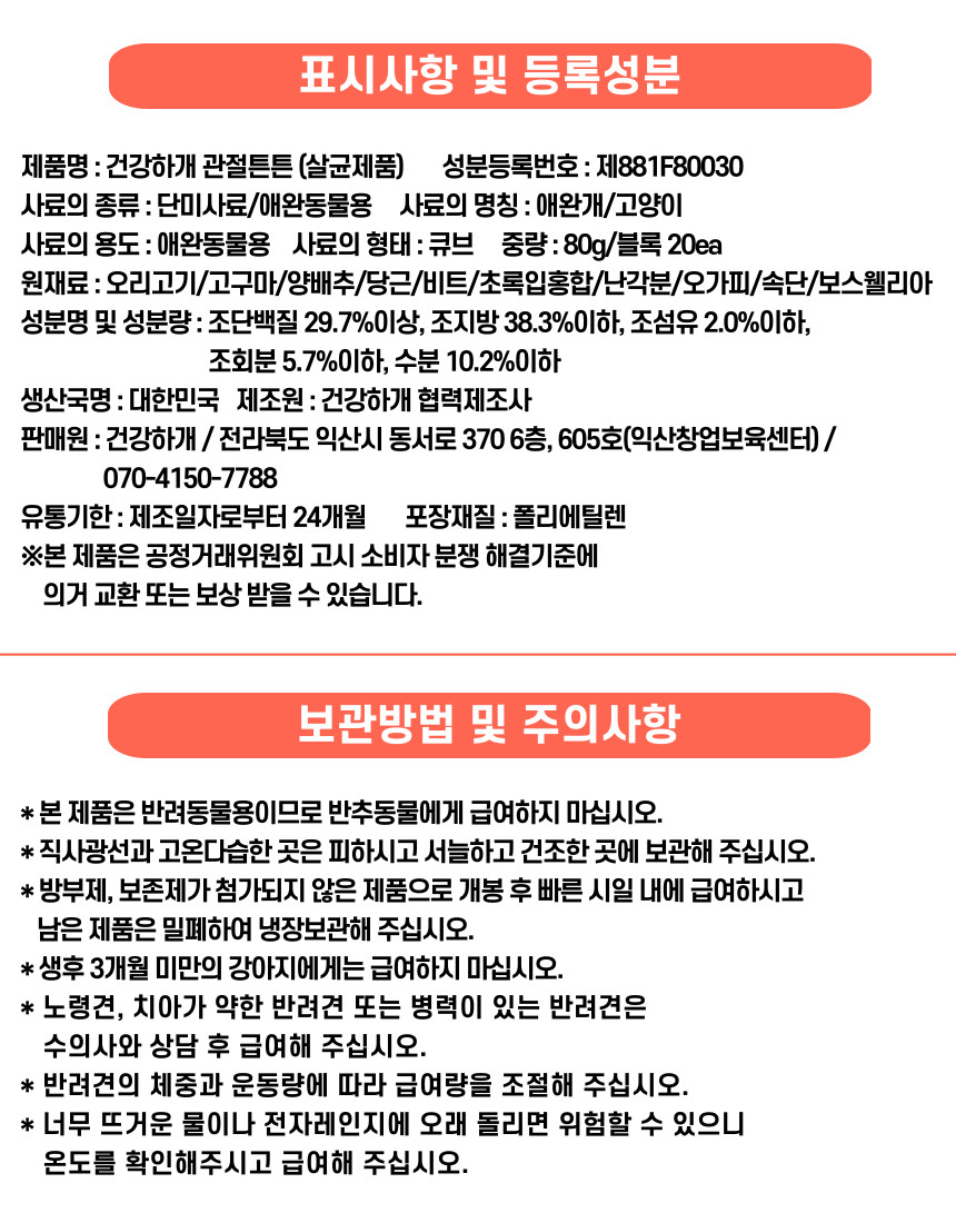 건강하개 강아지 동결건조화식 관절튼튼 오리 4gX20개입