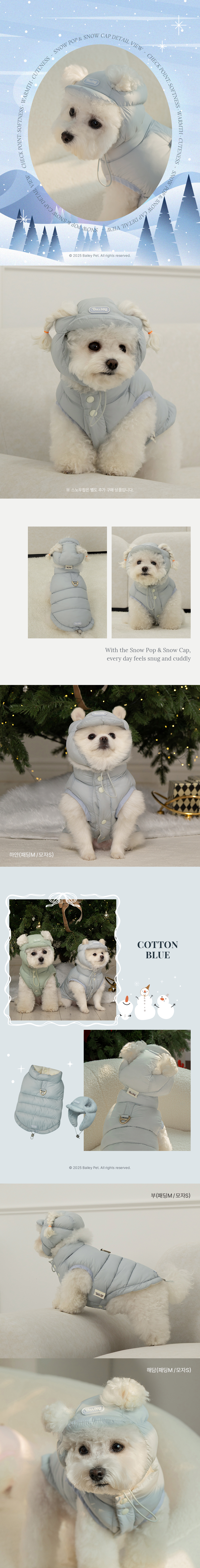 • 베일리펫 강아지 귀도리 애견 겨울 방한 모자 스노우캡 미스틱민트