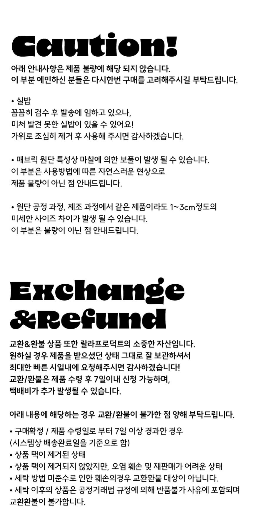 • 제주, 도서산간 추가 교환 반품비용 : 4,000원