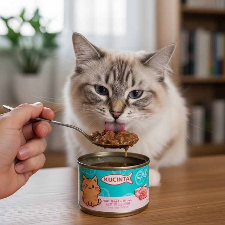 고양이의 건강을 위한 영양 가득한 식사를 제공하는 쿠친타